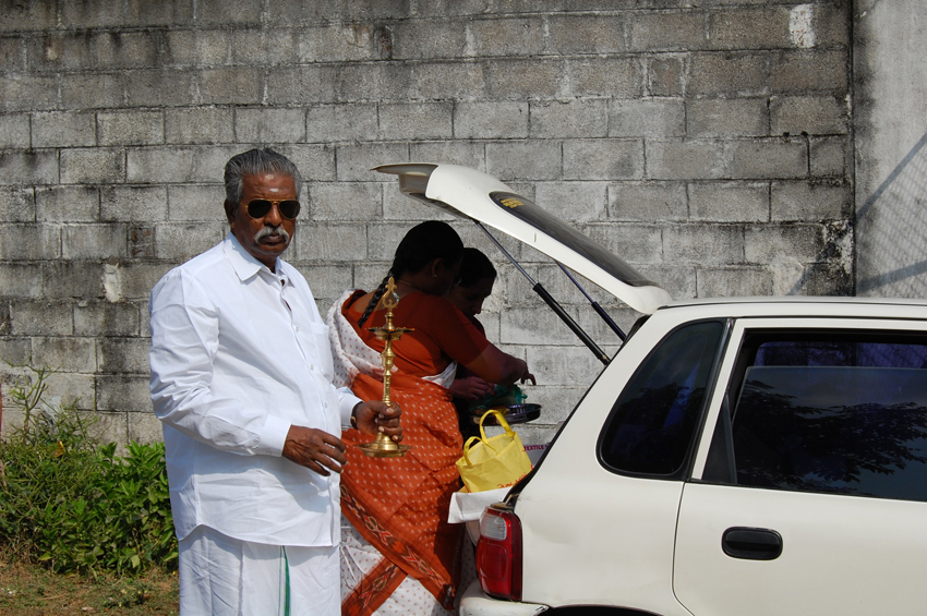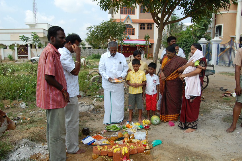 மகள் மைதிலியுடன் பூமி பூஜையின்போது |