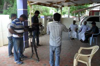 டிவிக்கு பேட்டி அளிக்கிறார் |